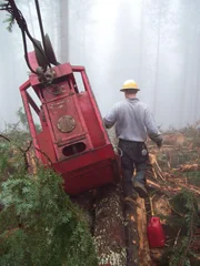 Ax men Season2 Clash of the Titans, Ax Men Staffel2 Aufholjagd Logger walking on a log next to red carriage..