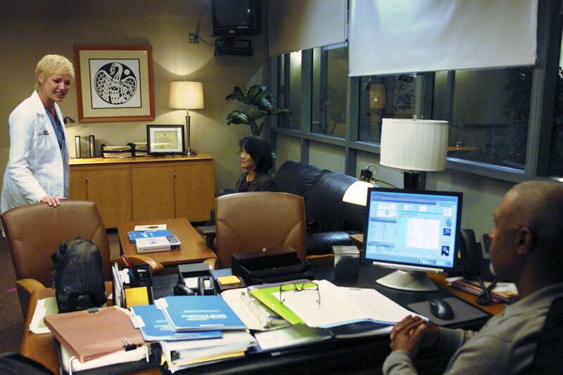• Die Invasion der neuen Kollegen bringt für alle Probleme mit: Izzie (Katherine Heigl, l.), Webber (James Pickens Jr., r.) und Missy Grant (Freda Foh Shen, M.) ...