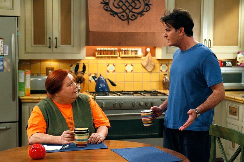 Charlie (Charlie Sheen, r.) schüttet bei Berta (Conchata Ferrell, l.) sein Herz aus, doch diese hat wenig Verständnis für ihn ...