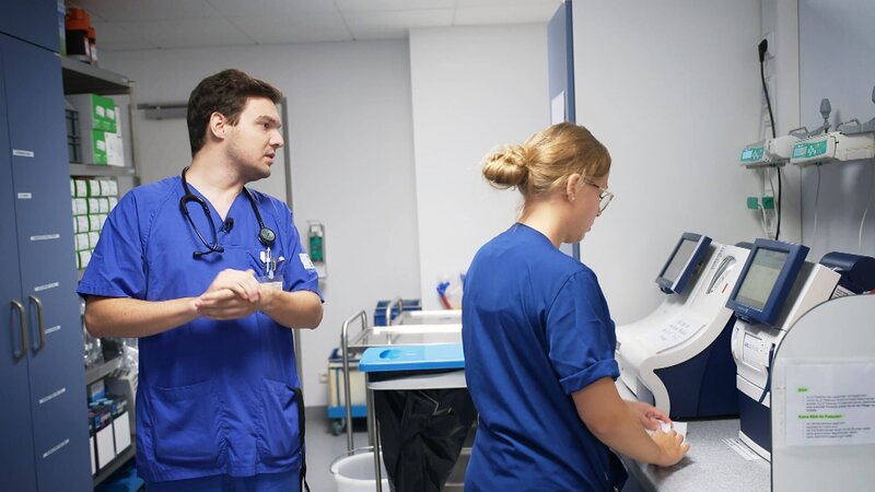 Ein junger Mann klagt nach dem Rauchen einer E-Shisha über Beschwerden. Eine ältere Dame ist zu Hause gestürzt. Und eine weitere Person leidet unter stark erhöhtem Blutdruck. Stationsleiter Alexander muss sein Team in Landshut-Achdorf sorgsam einteilen, um die Notfallversorgung der gleichzeitig eintreffenden Patienten zu gewährleisten. Im Elisabeth-Krankenhaus in Mönchengladbach behandeln die Mediziner unterdessen eine Frau mit Atembeschwerden. Und im Ausnüchterungsraum schläft ein Fußballfan nach dem Bundesligaspiel der Borussia seinen Rausch aus.
