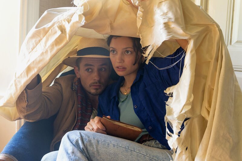 • Pia (Vivien König) und Albin (Niklas Löffler) verstecken sich unter einem Laken. Denn sie sind heimlich in das Haus des Schriftstellers Joakim Löwenhielm eingedrungen, und nun kommt jemand.