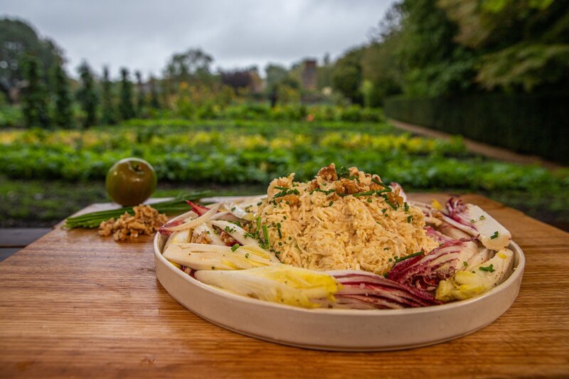 Gastgeber Raymond Blanc freut sich auf einen Besuch seines alten Freundes Nathan Outlaw. Um den Sternekoch kulinarische zu überraschen, bereitet Blanc ein wunderbar cremiges Käsefondue und Knollensellerie-Remoulade zu.