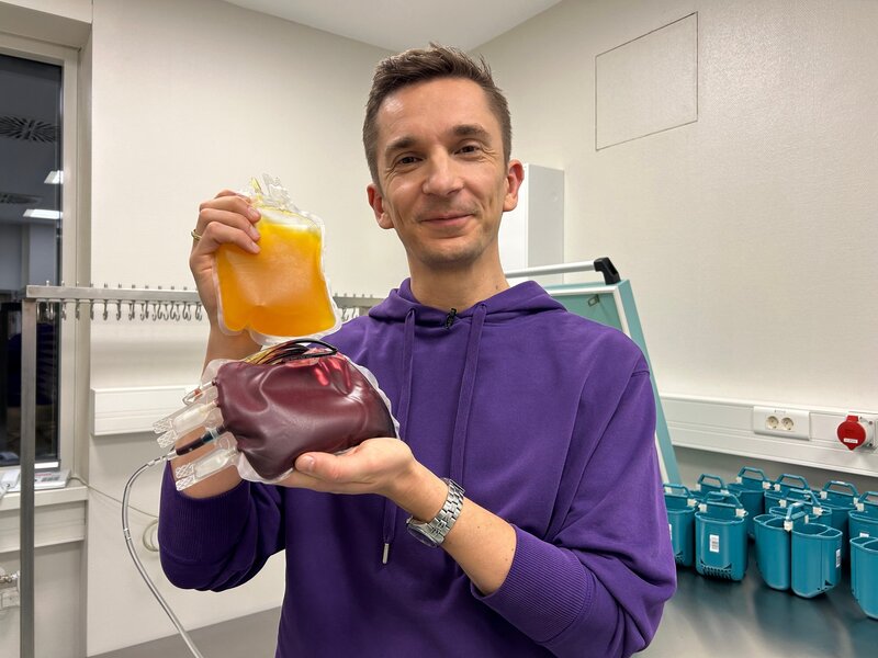 Wann brauchen wir fremdes Blut? Wie viel Blut kann ein Mensch geben? Und warum kann Blut nicht direkt übertragen werden? Das will "PUR+"-Moderator Eric Mayer herausfinden und spendet Blut. Jana hat zu wenig Blut. Seit ihrer Geburt und für immer. Sie hat die seltene Krankheit Diamond-Blackfan-Anämie. Überleben kann sie nur, wenn sie jeden Monat eine Bluttransfusion bekommt. Aber stehen immer genug Blutspenden für sie zur Verfügung?