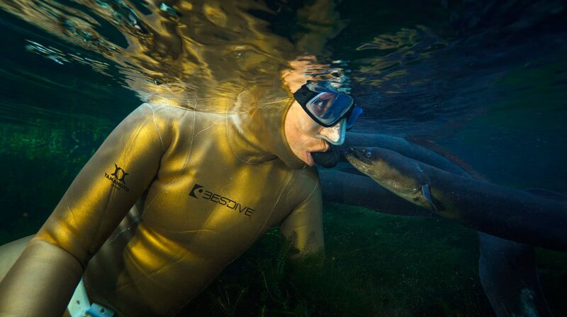 Deutschlands erfolgreichste Apnoetaucherin Anna von Boetticher geht in dieser neuen Staffel "Waterwoman" an die Grenzen: Sie sucht nach Wasserabenteuern am Ende der Welt, in Neuseeland und der Südsee und am höchsten Punkt Europas, am Mont Blanc. Aber auch an Deutschlands Seen, Flüssen und Küsten findet sie unter Wasser Überraschungen. Dabei folgt sie wieder ihrem Lebensmotto: Es ist nie nichts da. Mit ihrer grenzenlosen Neugier kann sie sich für Seegraswiesen in der Kieler Förde genauso begeistern wie für Stachelrochen in Tahiti oder Oktopusse in Neuseeland. In Neuseeland gibt es Haie, Wale und Kraken. Aber für Anna von Boetticher ist das spannendste Tier der Langflossenaal. Anna hat über Social Media den neuseeländischen Unterwasserfilmer Dave Abbott kennengelernt, der von den ersten "Waterwoman"-Filmen ganz begeistert war. Er hat angeboten, ihr und der Crew die Unterwasserwelt seiner Heimat zu zeigen. Anna möchte dabei besonders gerne den neuseeländischen Aal erleben. Die größte Aalart der Welt kann zwei Meter lang und über 100 Jahre alt werden. Allerdings ist es nicht ganz ungefährlich, sich zu den Aalen ins Wasser zu begeben. Mit ihrem Maul könnten die Tiere Anna einen ganzen Finger abreißen. Am Ende macht sie eine schmerzhafte Erfahrung mit den Aalen.