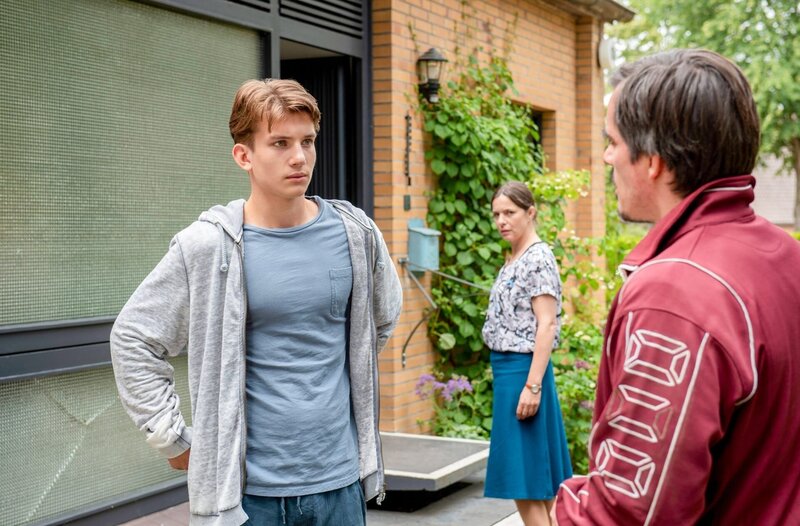 Jörg Cordes (Hannes Wegener, r.) sucht nach seiner Haftentlassung den Kontakt zu seinem Sohn Tobias (Luke Matt Röntgen, l.). Doch der hält ihn seit Jahren für einen Mörder (mit Annika Kuhl, h.).