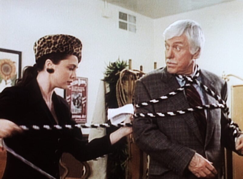 • Dr. Sloan (Dick Van Dyke, r.) wird von der Zauberkünstlerin Cleo (Emma Samms, l.) gefesselt.