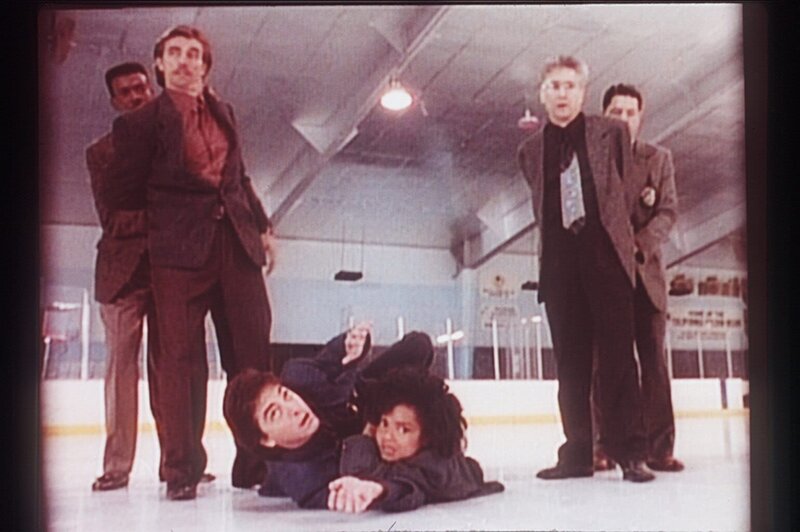 Jack (Scott Baio, Mitte l.) und Amanda (Victoria Rowell, Mitte r.) werden auf der Eisbahn von Verbrechern gejagt.