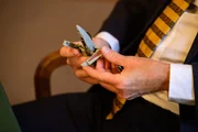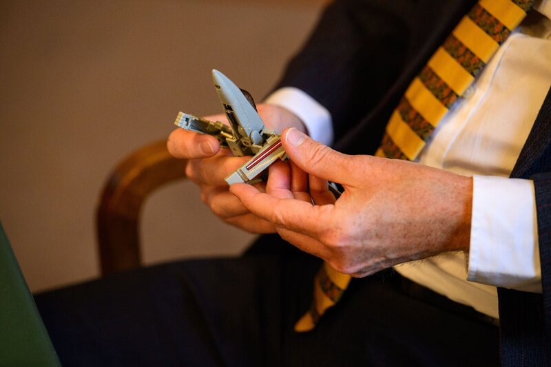 Ein Mann hält ein Spielzeug