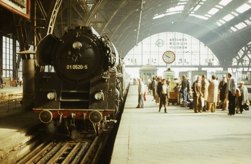 Dampflokomotiven beschleunigten die Mobilität der Menschen um ein Vielfaches. Diese Antriebsart fand sich bei der Deutschen Reichsbahn der DDR noch bis 1988. Am 06.09.1981 hat dieser Eilzug mit der kraftvollen Baureihe 01.5 den Hauptbahnhof Leipzig erreicht.