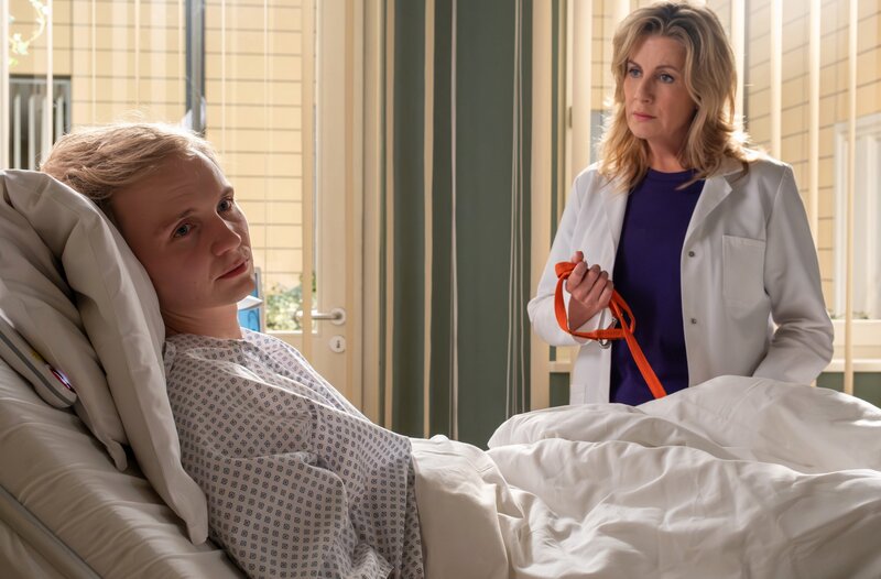 • Theresa Biel (Irina Kurbanova) ist eigentlich in der Klinik, um als IT-Technikerin den neuen Pflegeroboter zu programmieren. Doch plötzlich hatte sie solche Schmerzen, dass sie sich plötzlich als Patientin von Dr. Philipp Brentano (Thomas Koch) wiederfindet. Und dieser hat leider keine guten Nachrichten.
