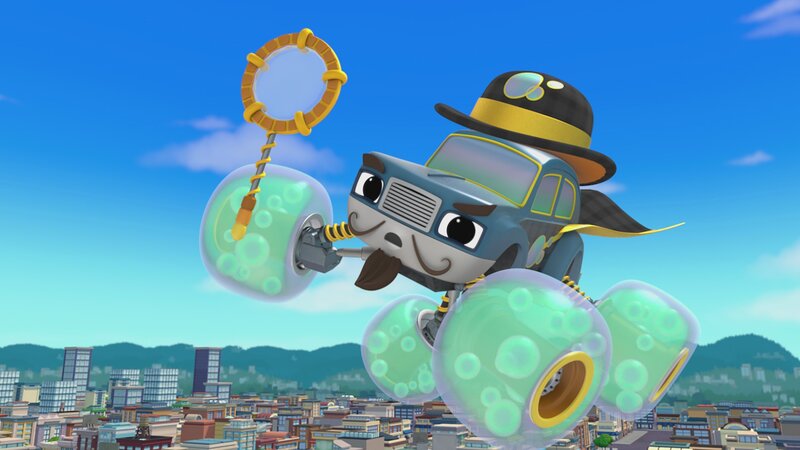 Die Superhelden eilen zur Rettung! Wenn der Seifenblasen-Macher anfängt, alles in seinen Blasen einzufangen, müssen Blaze und Sparkle zu Superhelden werden, um Reifenhausen zu retten!