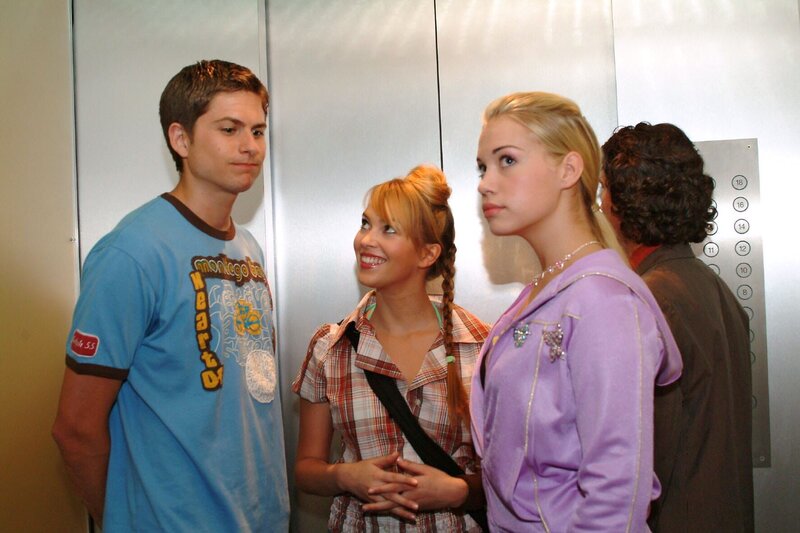 Nach der gemeinsamen Nacht zu dritt kommen Hannahs (Laura Osswald, M.) Späße bei Timo (Matthias Dietrich, l.) und Kim (Lara-Isabelle Rentinck, r.) nicht gut an.