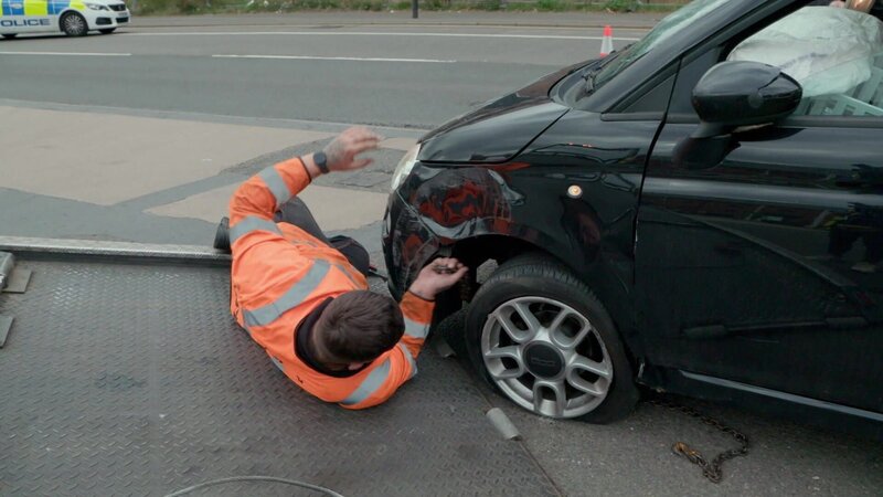 Shawn Begley und Jon Bryon winken in Surrey ein Fahrzeug aus dem Verkehr. Denn der Wagen ist nicht versichert. Der Fahrer kann keinen gültigen Führerschein vorweisen und im Vehikel riecht es verdächtig nach Cannabis. Deshalb ist obendrein ein Drogentest fällig. Dabei wird schon nach wenigen Minuten das Ergebnis angezeigt. Abschlepp-Fahrer Ashley kümmert sich unterdessen in Northampton um einen umgestürzten Pkw. Der Kleinwagen hat sich überschlagen und ist anschließend auf dem Dach gelandet. Kann der Voll-Profi das Auto wieder auf die Räder stellen?