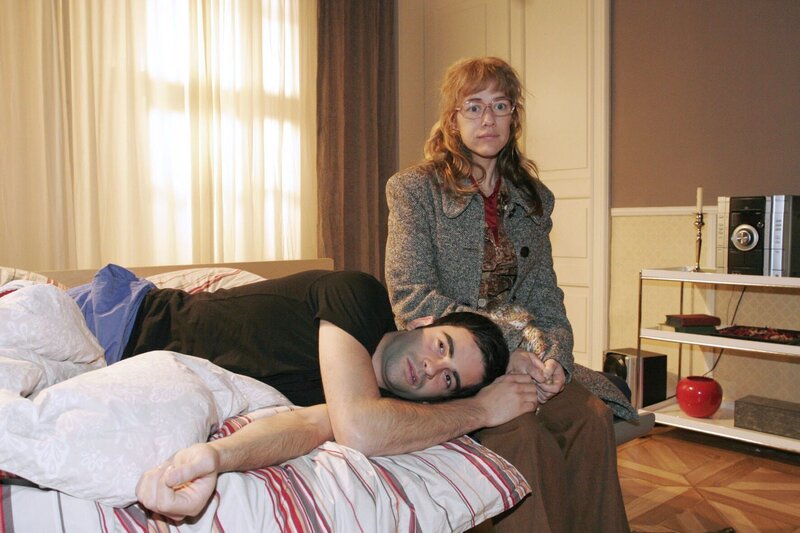 Lisa (Alexandra Neldel, r.) findet den unter der Trennung von Mariella leidenden David (Mathis Künzler, l.) in desolater Verfassung vor. (Dieses Foto von Alexandra Neldel darf nur in Zusammenhang mit der Berichterstattung über die Serie "Verliebt in Berlin" veröffentlicht und verbreitet werden.)