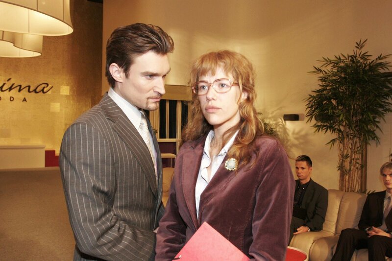 Als Richard (Karim Köster, l.) dem Parfüm "Mariella" keine Chance mehr gibt, lässt sich Lisa (Alexandra Neldel, r.) zu einem Bluff hinreißen, indem sie behauptet, den Werbeguru Rokko für die Kampagne gewonnen zu haben. (Dieses Foto von Alexandra Neldel darf nur in Zusammenhang mit der Berichterstattung über die Serie "Verliebt in Berlin" veröffentlicht und verbreitet werden.)