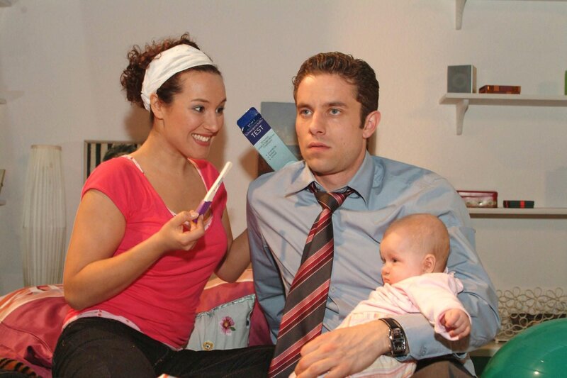 • Max (Alexander Sternberg, r.) ist geschockt, als Yvonne (Bärbel Schleker, l.) ihm das Ergebnis des Schwangerschaftstests präsentiert - positiv.