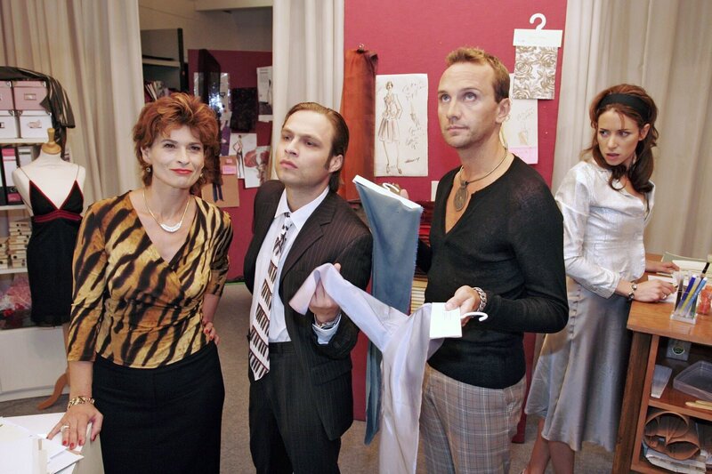 Im Job läuft es für Bruno (Tim Sander, 2.v.l.) mehr schlecht als recht. Er wird von Sophie (Gabrielle Scharnitzky, l.) und Hugo (Hubertus Regout, 2.v.r.) wegen seiner mangelnden Qualifikation gerügt und zur Zusammenarbeit mit Nora (Julia Malik, r.) verpflichtet.