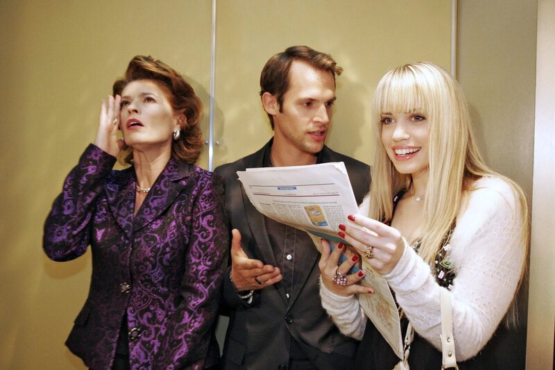 Im Gegensatz zu Sophie (Gabrielle Scharnitzky, l.) und Paolo (Thorsten Feller, M.) ist Kim (Lara-Isabelle Rentinck, r.) begeistert, ihr freizügiges Foto in der Presse zu entdecken.