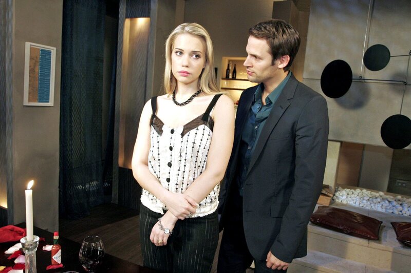 • Vergeblich versucht Kim (Lara-Isabelle Rentinck, l.) mit einem leckeren Essen ein wenig von Paolos (Thorsten Feller, r.) Aufmerksamkeit auf sich zu ziehen.
