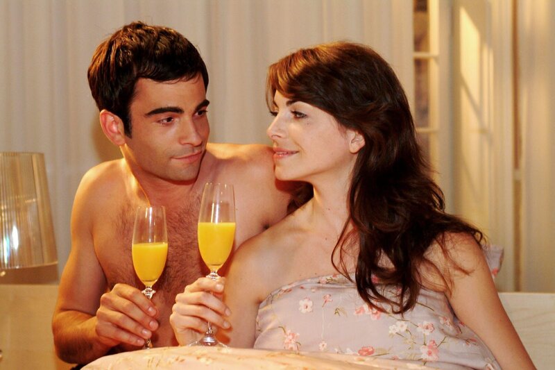David (Mathis Künzler, l.) und Mariella (Bianca Hein, r.) genießen nach einer stürmischen Liebesnacht den Morgen miteinander.