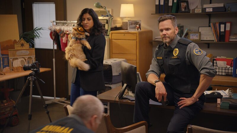 L-R: Vella Lovell as Emily Price and Joel McHale as Frank Shaw