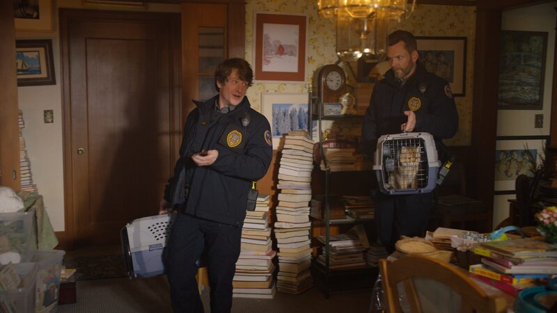 L-R: Michael Rowland as Fred 'Shred' Taylor and Joel McHale as Frank Shaw