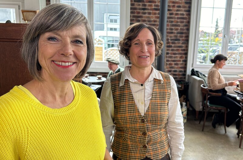 Annette Krause (links) mit Besitzerin Sandra Hellmuth im Café Eisvogel in Nehren.