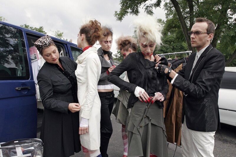 Lotte (Susanne Szell, l.) und Hugo (Hubertus Regout, r.) bereiten die Models vor.