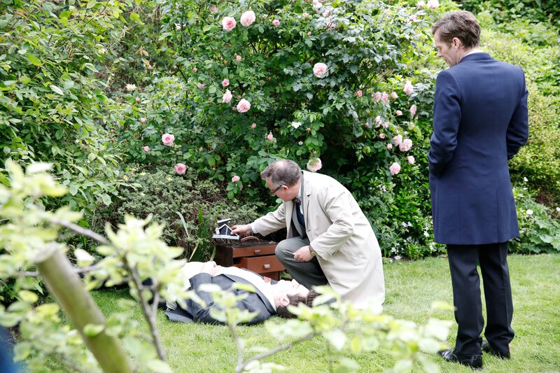 • Inspektor Morse (Shaun Evans, r.) wird an einen Tatort gerufen. Dr. Max DeBryn (James Bradshaw, l.) und Inspektor Morse wollen so schnell wie möglich Antworten auf die vielen Fragen, die die Leiche aufwirft, finden.