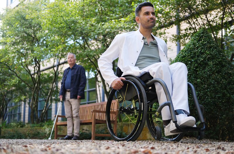 • Dr. Ilay Demir (Tan Caglar, li.) hat versucht, in dem fast gänzlich erblindeten Dr. Roland Heilmann (Thomas Rühmann, re.) ein klein wenig Optimismus zu wecken. Ilay war in einer ähnlichen Situation, als er nach einem Autounfall plötzlich nicht mehr laufen konnte. Doch Roland hat noch eine weite Strecke vor sich, bis er für Gespräche dieser Art dankbar sein könnte.