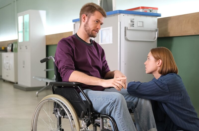 • Elias Adler (Gareth McGregor) erklärt seiner Freundin Clara Rudloff (Paulina Hobratschk), warum er mit ihrer Mutter im Auto war, als sie den Unfall hatten.
