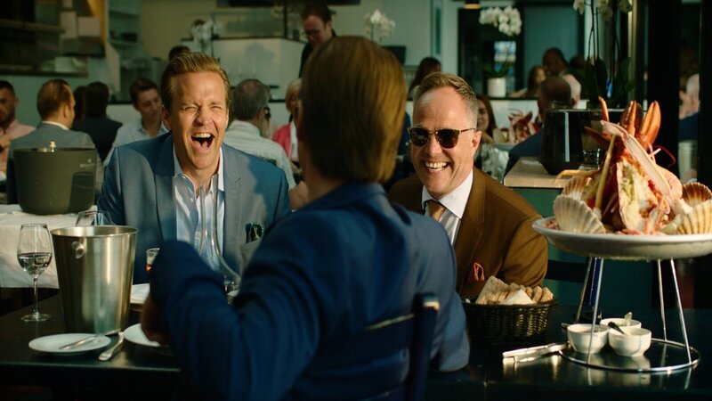 Henrik (Tobias Santelmann, l.), Jeppe (Jon Øigarden, r.) und Adam (Simon J. Berger, M.) lassen es wie immer krachen. Adam erzählt von seiner neuesten Idee gegen die Einsamkeit.