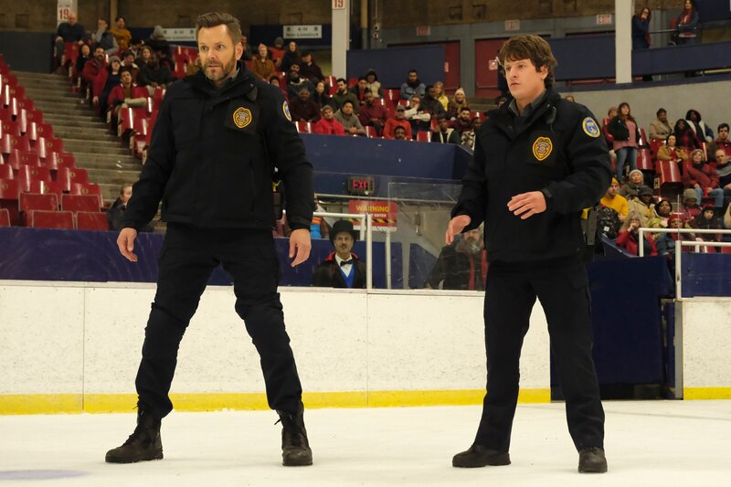 L-R: Joel McHale as Frank, Michael Rowland as Shred