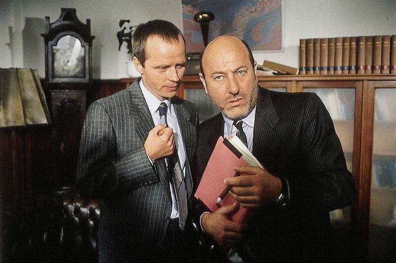 Arnold (Michael Kausch) hat gekuendigt und Liebling (Manfred Krug) kommt ins Gruebeln...