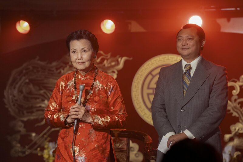 l-r: Crapulent Major's Mother (Kieu Chinh), The Major (Phan Gia Nhat Linh)
