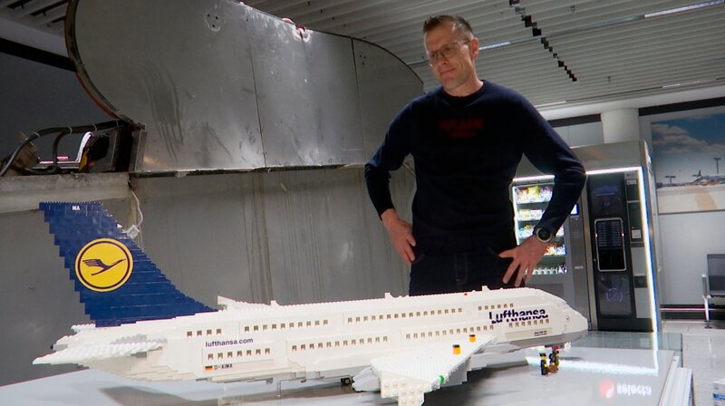 Aus 7126 Lego-Steinen besteht dieser Airbus A380 von Nils Hartwig. Den Bauplan hat der Zahntechniker selbst erstellt. Jetzt darf er den Flieger am Flughafen ausstellen.