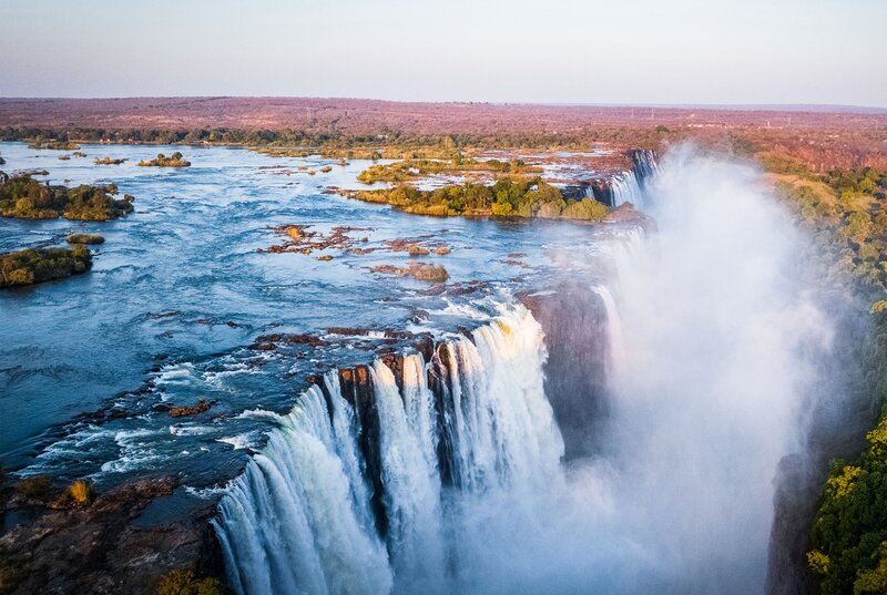 Wasserfälle sind nicht nur Naturphänomene, sondern auch wichtige Energielieferanten, zudem Besuchermagnete und Einkommensquellen. Eines der bekanntesten Beispiele sind die Niagarafälle in Nordamerika. Im südlichen Afrika, an der Grenze von Simbabwe und Sambia, stürzt der Sambesi über 100 Meter in eine schmale Schlucht und bildet dabei den breitesten Wasservorhang der Welt: die gewaltigen Victoriafälle. Tag und Nacht steigt eine riesige Gischtwolke auf, die weit zu sehen ist.