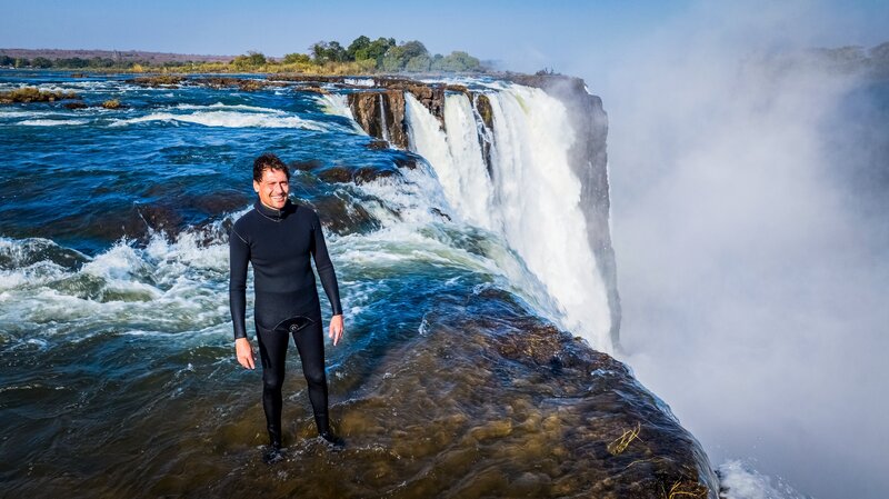 • "Terra X"-Moderator Uli Kunz erkundet die andere Seite der Viktoriafälle.