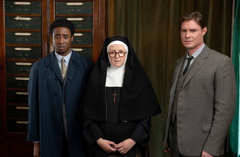 v.l.n.r.: Di Sam Gillespie (Max Brown), Sister Boniface (Lorna Watson) und Ds Felix Livingstone (Jerry Iwu).