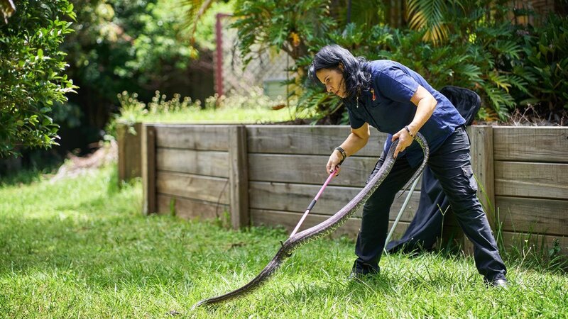 Julia Bakers Kundin steht sichtlich unter Schock. Eine Gelbkopf-Peitschenschlange hat der jungen Frau an der Ostküste Australiens einen gehörigen Schreck eingejagt. Doch das Gift der Kriechtiere ist für gesunde Menschen nicht lebensbedrohlich - vorausgesetzt, man ist nicht allergisch. Ganz anders sieht es mit dem Toxingemisch der Östlichen Braunschlange aus. Mit dieser Gattung bekommt es Julia in dieser Folge gleich mehrfach zu tun. Und wie schnell bei den Einsätzen der Schlangenfängerin etwas schieflaufen kann, zeigt sich beim letzten Notruf des Tages.
