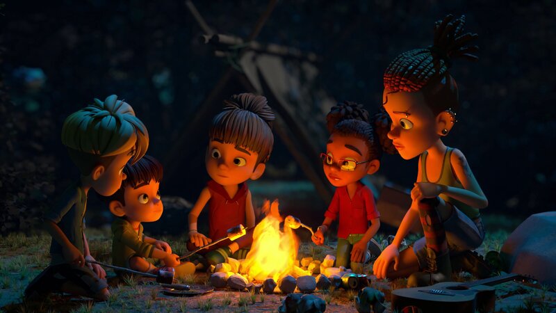 • Bei ihrem Streifzug durch den Wald, lernen Raphael, Kleiner Fuß, Bohnenstange und Lina eine junge Spanierin kennen, die sie zum Lagerfeuer einlädt.