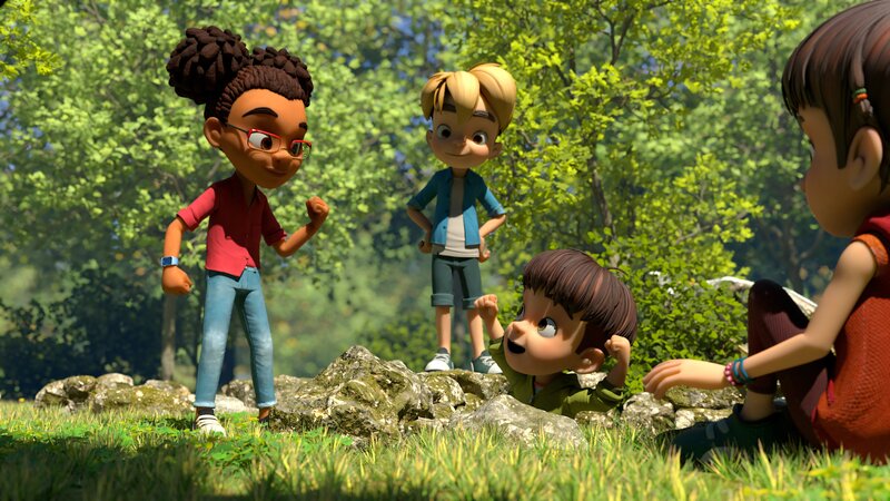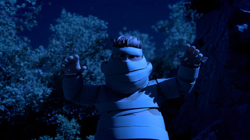 Bohnenstange und ihre Bande suchen die Reste eines Grabes aus einer vergangenen Zeit. Als sie es bei der Felshöhle finden, sagt Raphael, dass die Toten sich für die Ruhestörung rächen werden. Dass die Toten auferstehen, das nimmt Raphael keiner ab. Aber das Hanghuhn, das gibt es wirklich! Eine Kreatur halb Ziege halb Huhn, die auf einer Seite kürzere Beine hat als auf der anderen, damit sie am Hang stehen kann. Dieses Wesen will Kleiner Fuß unbedingt sehen.