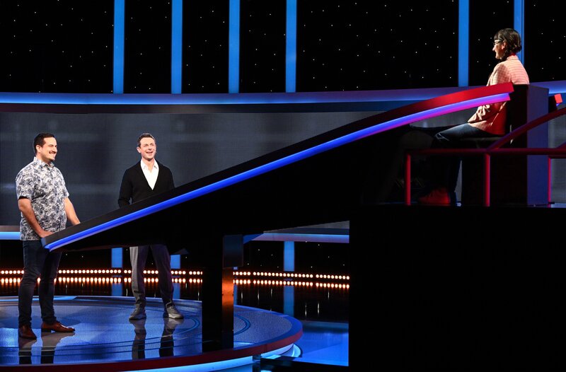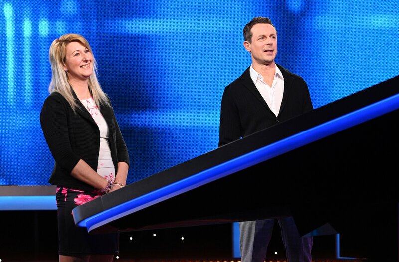 Moderator Alexander Bommes (r.) mit der Kandidatin Jennifer Spaniol (l.).Bild: © ARD/Uwe Ernst