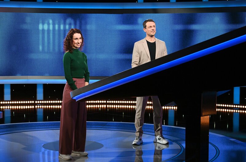 Moderator Alexander Bommes (r.) mit der Kandidatin Jana Grötzinger (l.).Bild: © Uwe Ernst