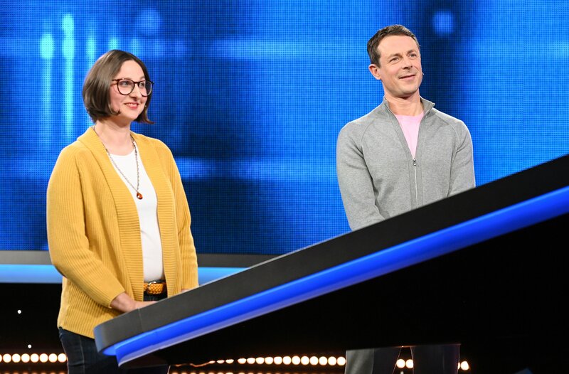 Moderator Alexander Bommes (r.) mit der Kandidatin Daniela Daus (l.).Bild: © ARD/Uwe Ernst