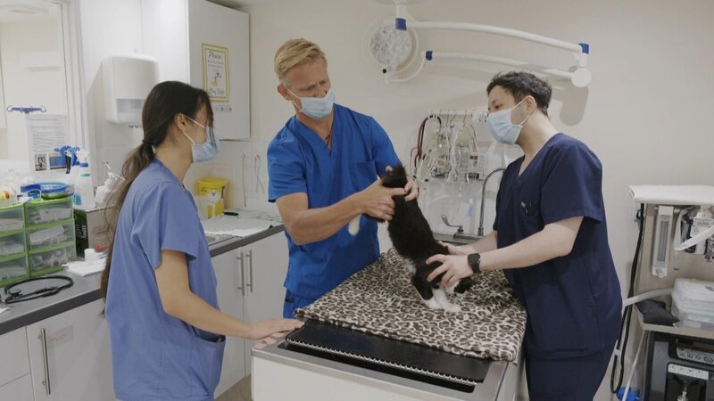 Alex behandelt eine Katze, die vermutlich von einer Schlange gebissen wurde.