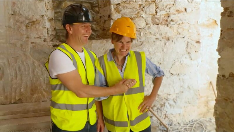 Sarah und das Team beginnen mit dem Abtragen des Daches und der Beschaffung von Materialien.