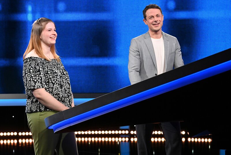 Moderator Alexander Bommes (re.) mit der Kandidatin Johanna Kolodziej (li.).Bild: © ARD/Uwe Ernst