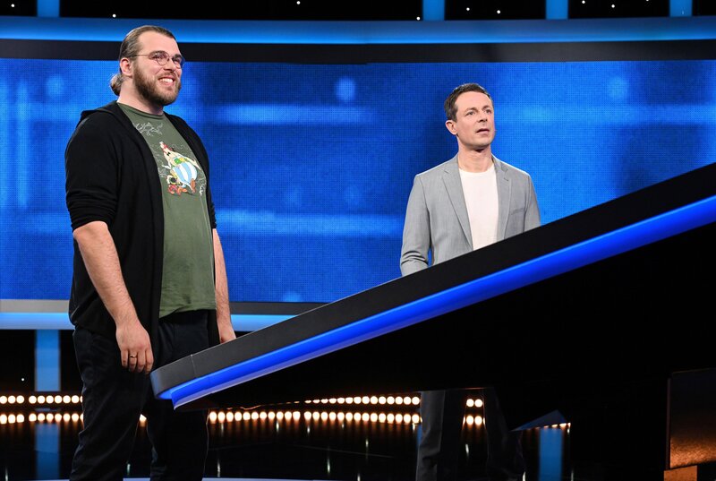 Moderator Alexander Bommes (re.) mit dem Kandidaten Manuel Rosada (li.).Bild: © ARD/Uwe Ernst