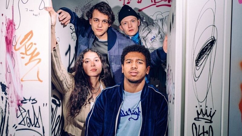 (v.l.n.r.) Younes (David Ali Rashed); Shirin (Manal Raga a Sabit); Amadou (Aaron Maldonado-Morales); Rocky (Vito Sack)